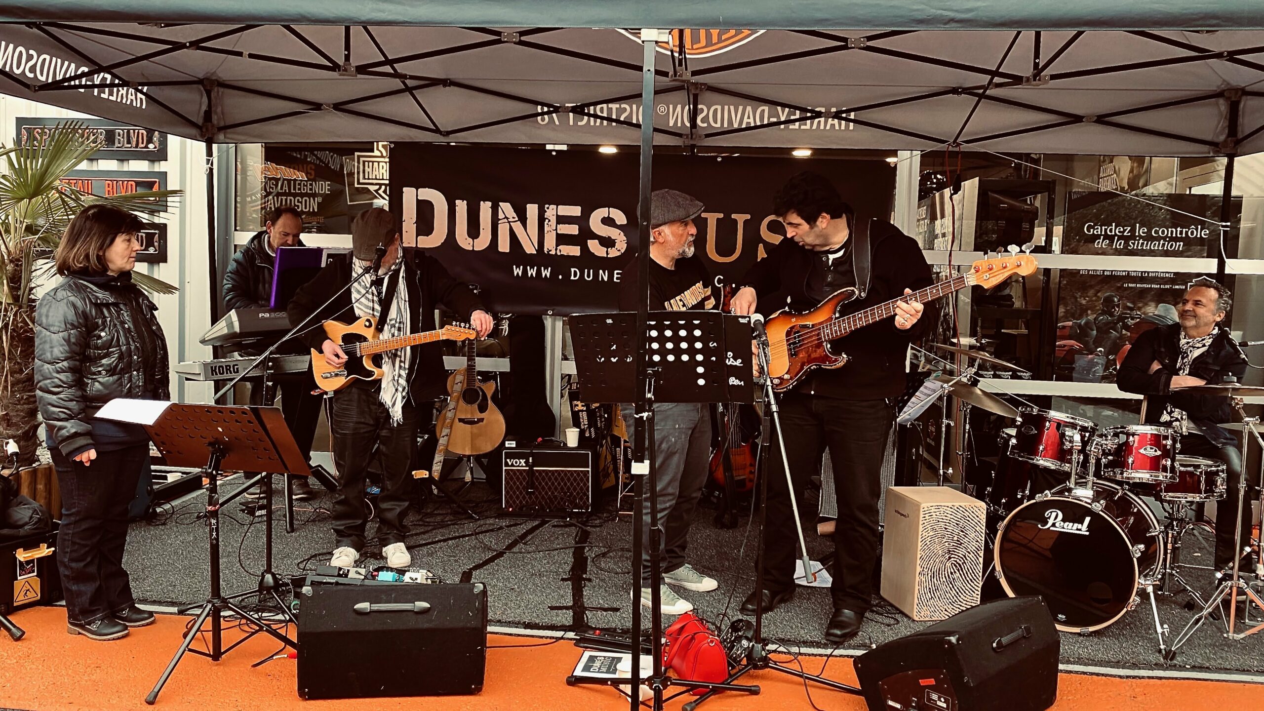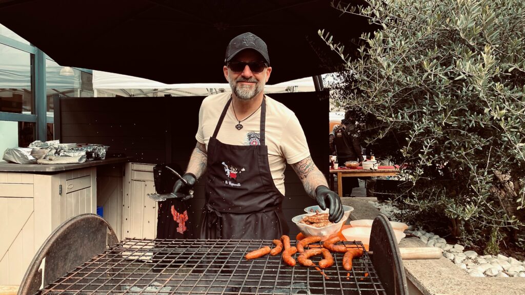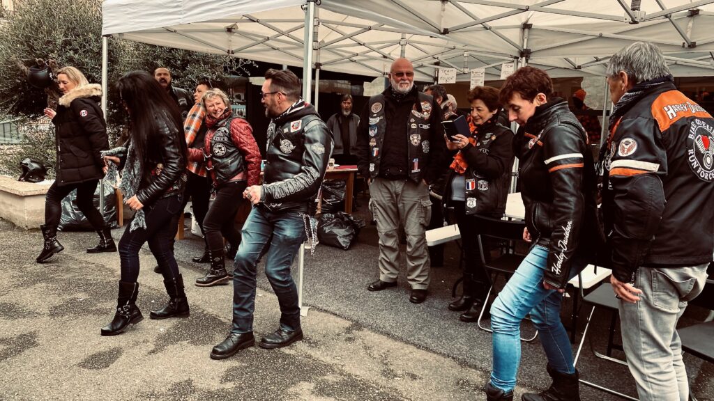 Apéritif ! « Team Mouse Vs Team pas mousse » nouveaux échanges, convivialité tout ce qu’on aime !!!!!. Merguez et saucisses sont prêtes, c’est parti ! Plus de 100 personnes à déjeuner, quel moment !. Le groupe DUNE chauffe l’ambiance et Jack prendra la bass pour mettre le feu sur du ZZ Top. Un Madison endiablé rythmera également le moment.