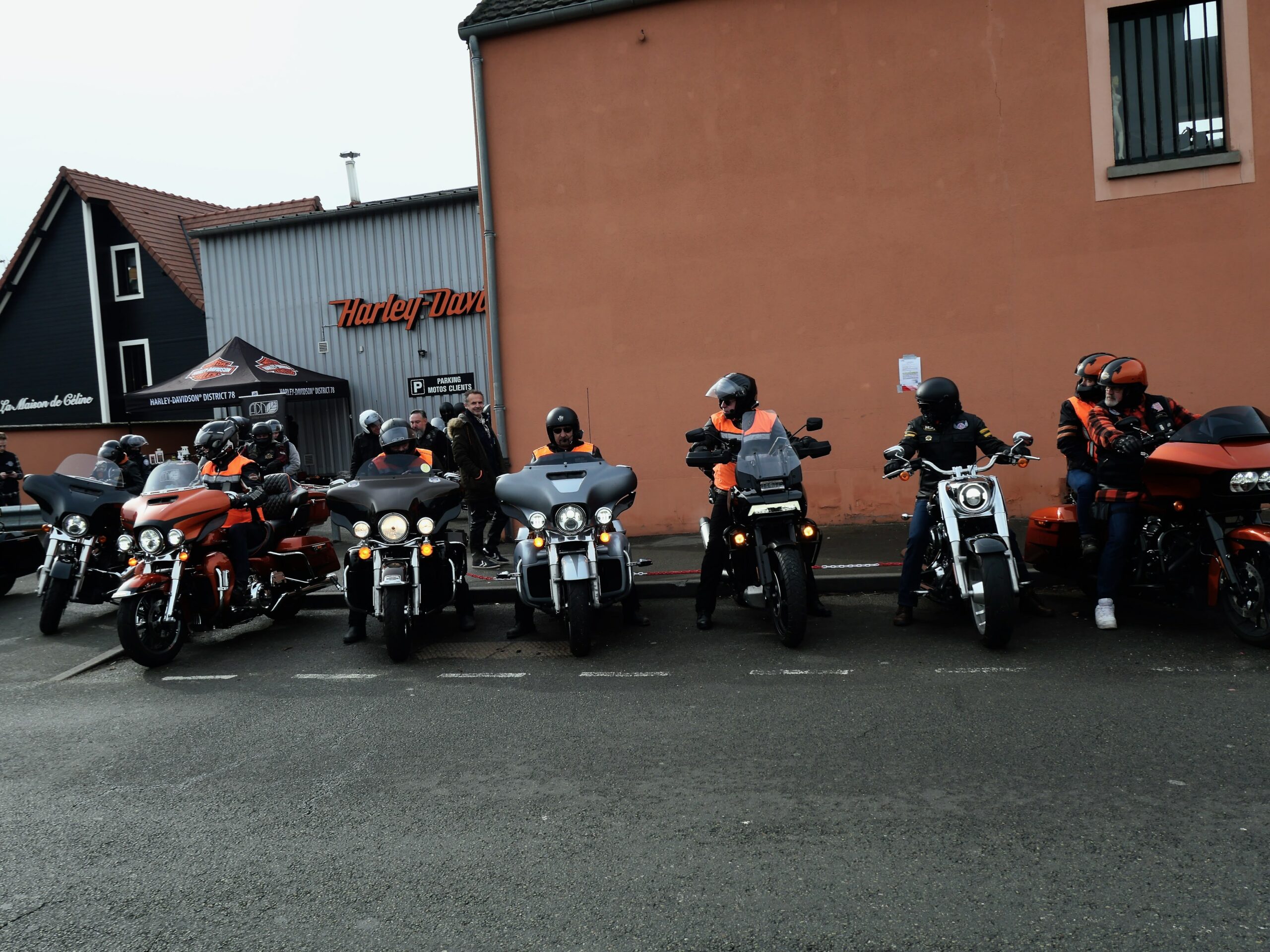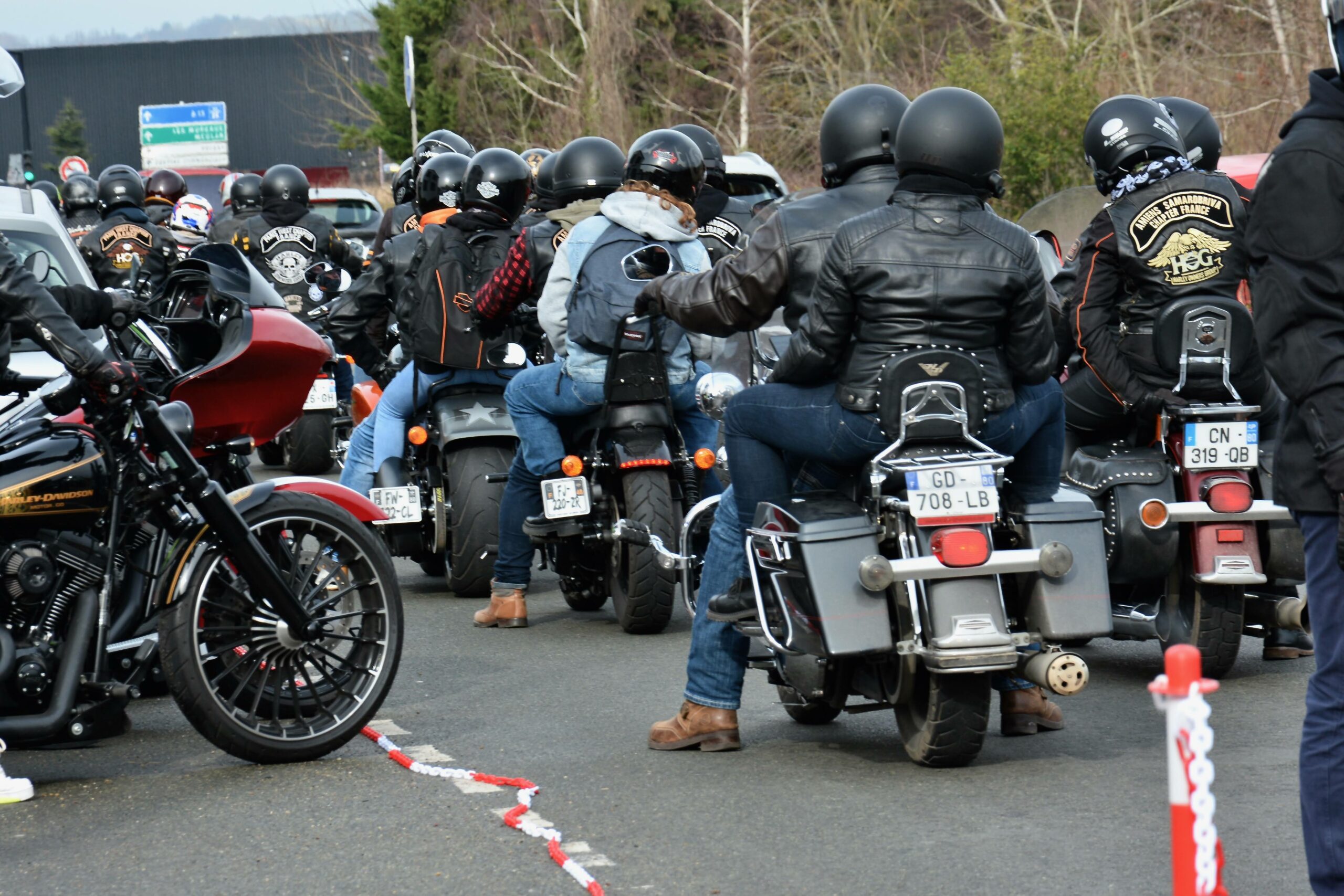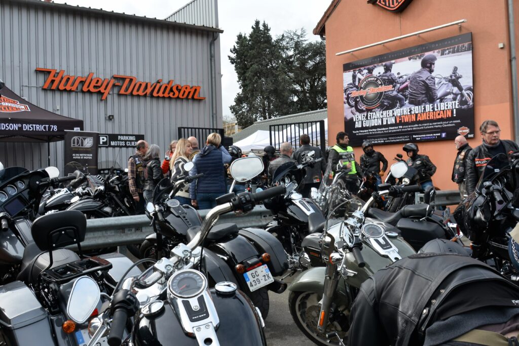 Nos amis Bikers du PWC arrivent et 14 membres du Amiens Samarobriva Chapter nous rejoignent. Le temps d’un café, des retrouvailles, c’est le briefing sécu, puis le convoi s’élance pour une balade à travers le 78. Les Safeties font leur chorégraphie pour sécuriser la horde de 33 motos.