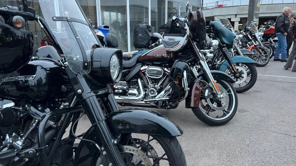 Après une pause KFé à l’aire de Giberville puis un déjeuner au « Petit Rungis », qui porte bien son nom, situé dans le marché d’intérêt régional de Rennes, nous arrivons à destination à la concession Harley Davidson Cornouaille Moto aux alentours de 16h00 après un parcours sans encombre hormis un seul nuage qui, bien sûr nous a légèrement arrosé.
