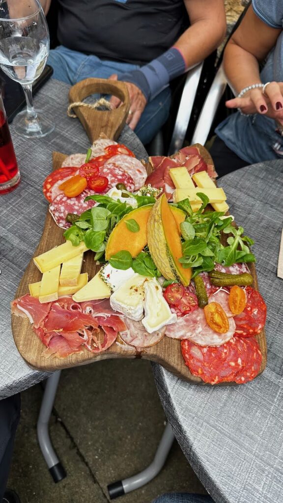 Après une nuit reposante, nous voilà repartis pour découvrir les beaux villages des Alpes Mancelles et les petites montagnes formant ce beau paysage. Un petit café et des chouquettes en guise de pause du matin, Hélène qui drague un ancien pour essayer sa superbe fiat 500 tout juste restaurée et nous voila repartis pour St Cenery ou un solide déjeuner fait de différentes planches de diverses victuailles nous attend.