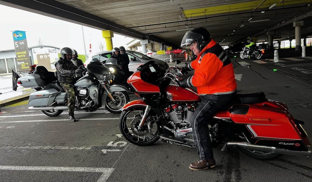 Pas d’inquiétudes, nous partirons bien tous ensemble par cette belle journée ensoleillée. Une soixantaine de motos pour environ soixante dix participants et quelques adaptations internes pour la gestion de la sécurité du convoi qui bien que commune à l’ensemble des Chapters, subit suivant les régions quelques développements internes.
