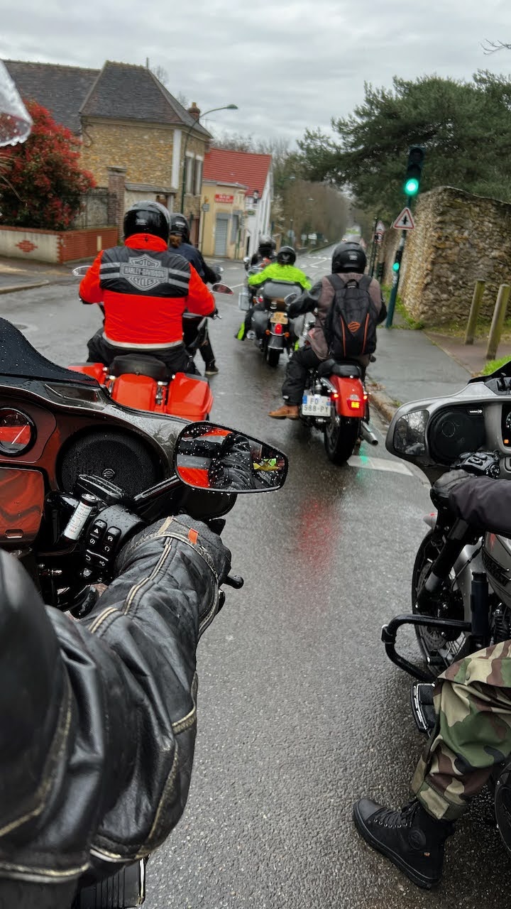 Les motos sont fières d’arborer leurs chromes étincelants mais la météo en a décidé autrement et nous accueille sous la pluie à Chambourcy.