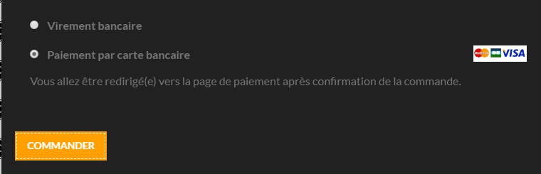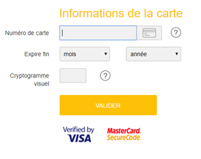 Paiement par carte bancaire via le module sécurisé de la banque :