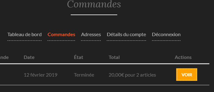menu Commande / Mon compte Le bouton [VOIR] vous permet de consulter le détail d’une commande :