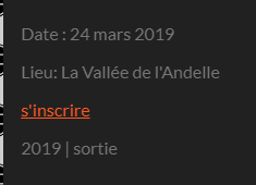 Vous sélectionnez ensuite dans le menu [Calendrier] la sortie souhaitée et vous cliquez sur le lien s’inscrire