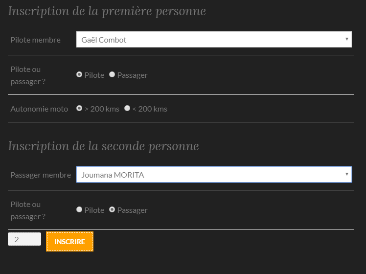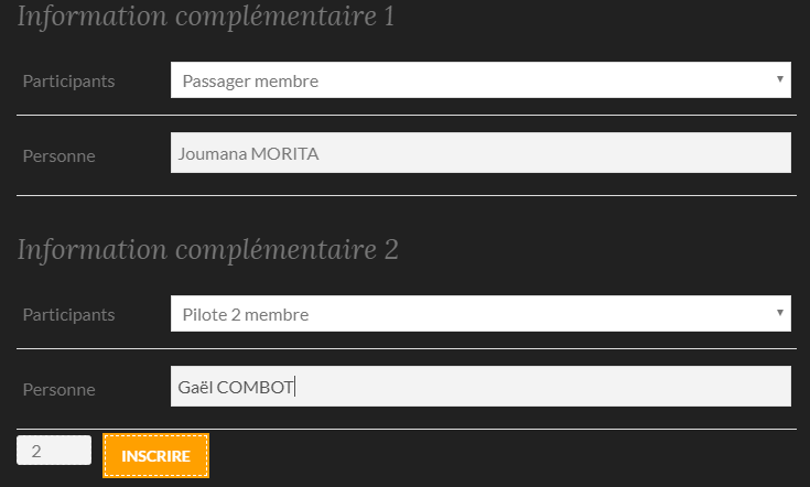 et vous ajoutez une 2ème inscription pour le pilote comme