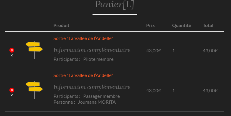 En cas d’erreur sur le Prénom Nom vous ne pouvez pas valider votre panier.