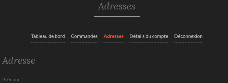 détail d’une commande La rubrique [Adresses] vous permet de consulter et éventuellement de modifier votre adresse.