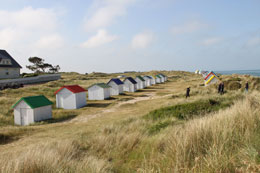 Arrêt aux maisons de plage de Gouville sur Mer et là notre lady nationale fait le bruit d’une mouette apeurée. Au vu du nombre de personnes à ses côtés on se dit que le problème va se régler, que nenni il nous faut son traducteur attitré : Alain pour comprendre qu’elle est en équilibre sur du sable et qu’elle va tomber. Tout rentre dans l’ordre. Ouf !