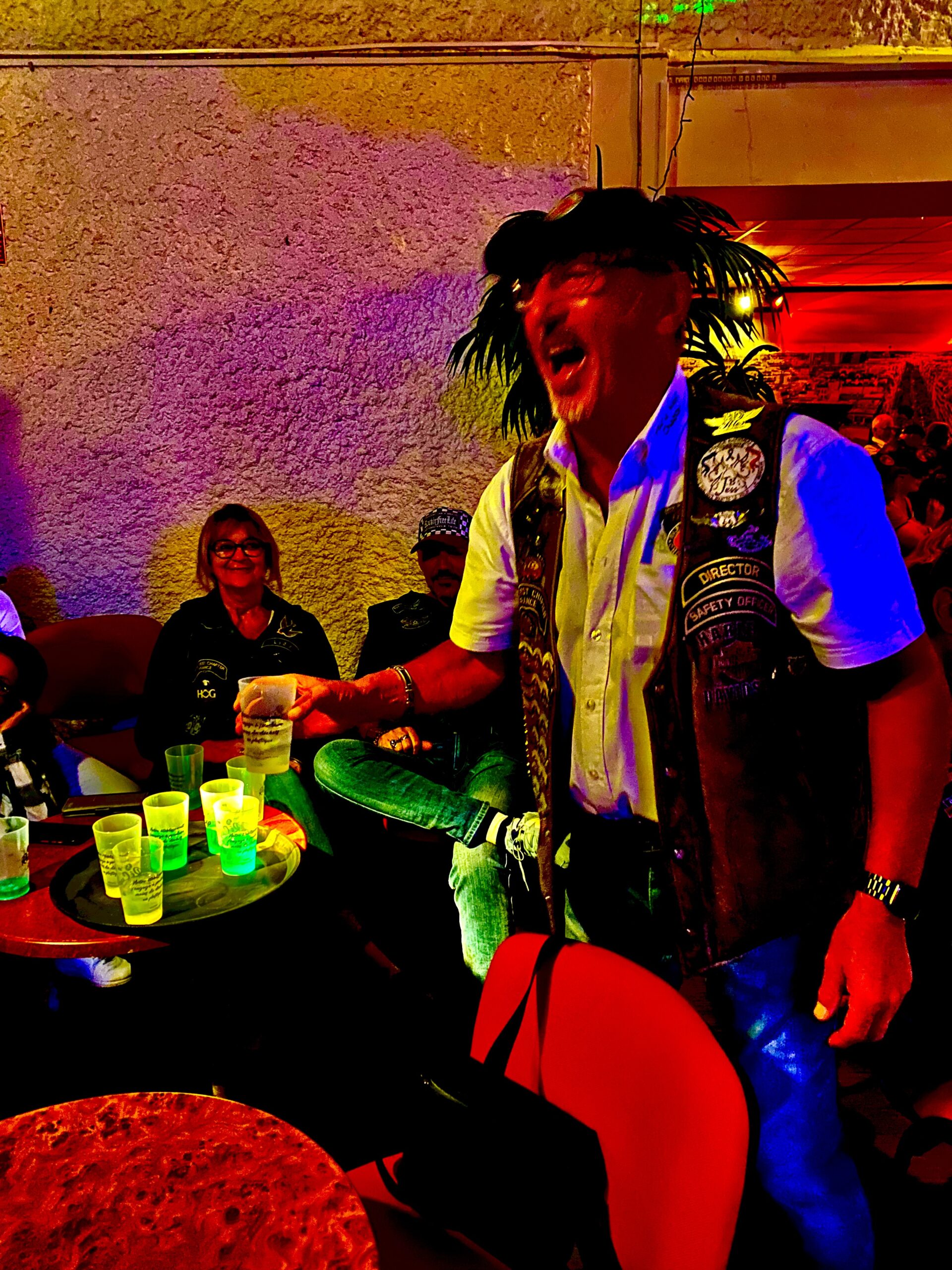 Un dernier passage en soirée chez le DJ pour aller tester nos meilleurs talents danseurs et danseuses avant quelques tournées au bar de … sirop de menthe je crois…heu enfin c’était vert quoi 😁.
