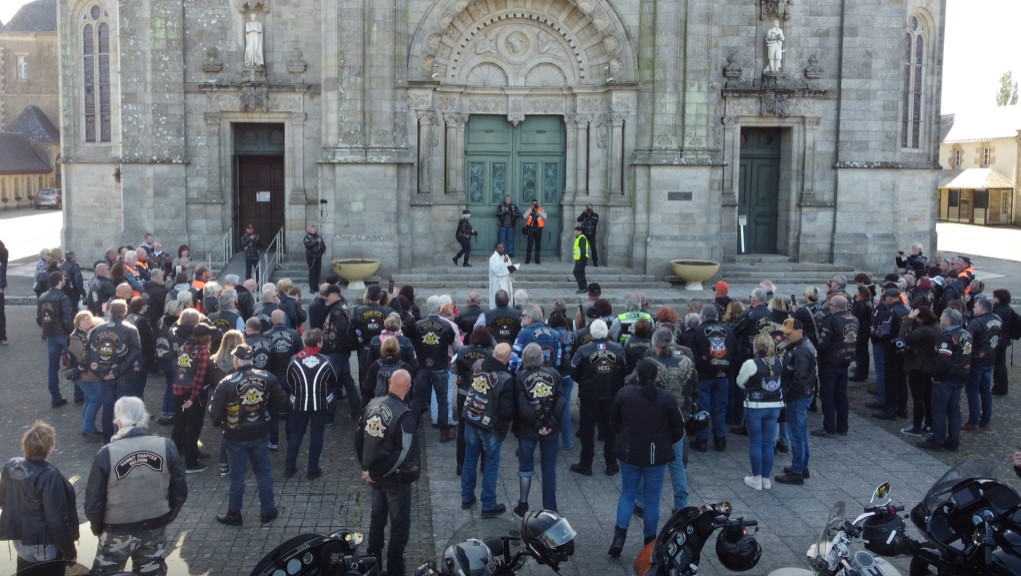 St Anne d’Auray marque beaucoup d’entre nous avec l’accueil chaleureux du curé de la Paroisse de ce lieu magnifique. Il regroupe plusieurs monuments dont la Basilique, le Cloître, et le Mémorial. Notre charmant curé sur le parvis de la basilique entouré du demi-cercle de Bikers s’est alors lancé dans un prêche suivi d’une bénédiction de chacun de nous et de nos montures appelant à la bienveillance et protection divine. Nous en garderons un souvenir très fort.