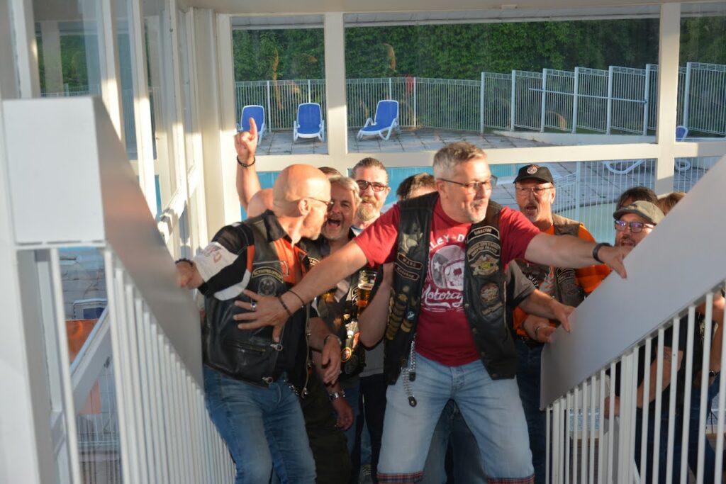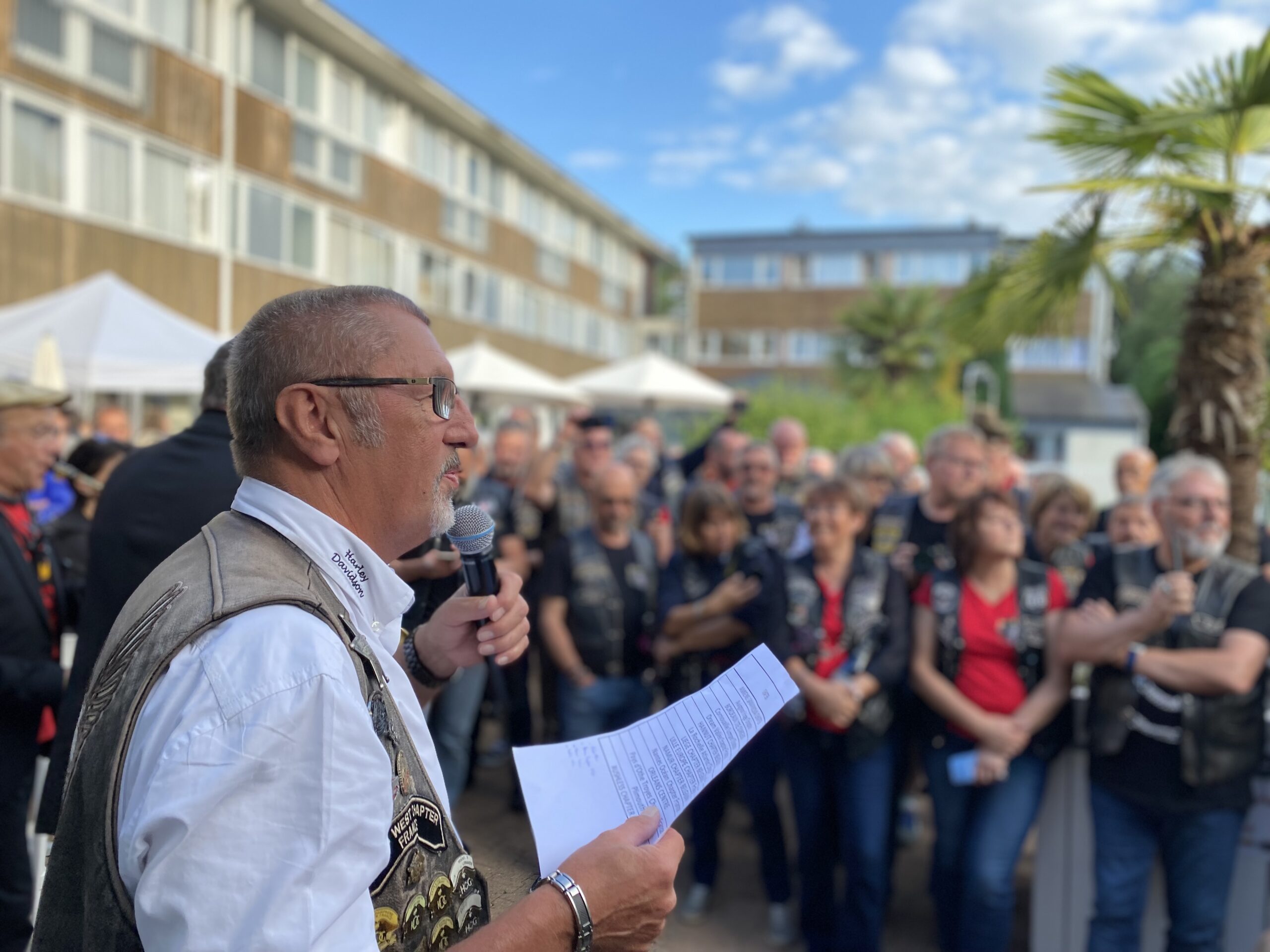 Point de départ Vendredi 15 h : Accueil des participants au Belambra de Dourdan, où nos équipes remettent les goodies (teeshirt, patch, porteclés, bouteille thermos, programme), délivrent les consignes pour le séjour et assurent l’assignement en 2 groupes de run les « Rouge » (68 motos – 99 personnes) et les « Bleu » (64 motos 94 personnes). Une belle compétition en perspective entre ces deux groupes qui sont prêts à tout donner pour faire de ces 20 ans une fête inoubliable.