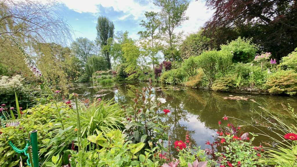 Avec la visite des jardins de Giverny, aussi sous le soleil (plus pour les « rouge » que les « bleu »), nous avions donc deux joyaux de notre histoire de France au programme. Le site renommé pour son association à la vie de Claude Monet s’est enrichi au fil des années d’une végétation luxuriante en essence de fleurs plus belles les unes que les autres. Des pavots, des iris, des pivoines, des digitales et tant d’autres dont les couleurs à cette époque de l’année rendent la visite d’autant plus appréciable. Sans compter bien sûr les fameuses mares, barques, nénuphar et autres petits ponts qui ont tant inspiré le peintre.