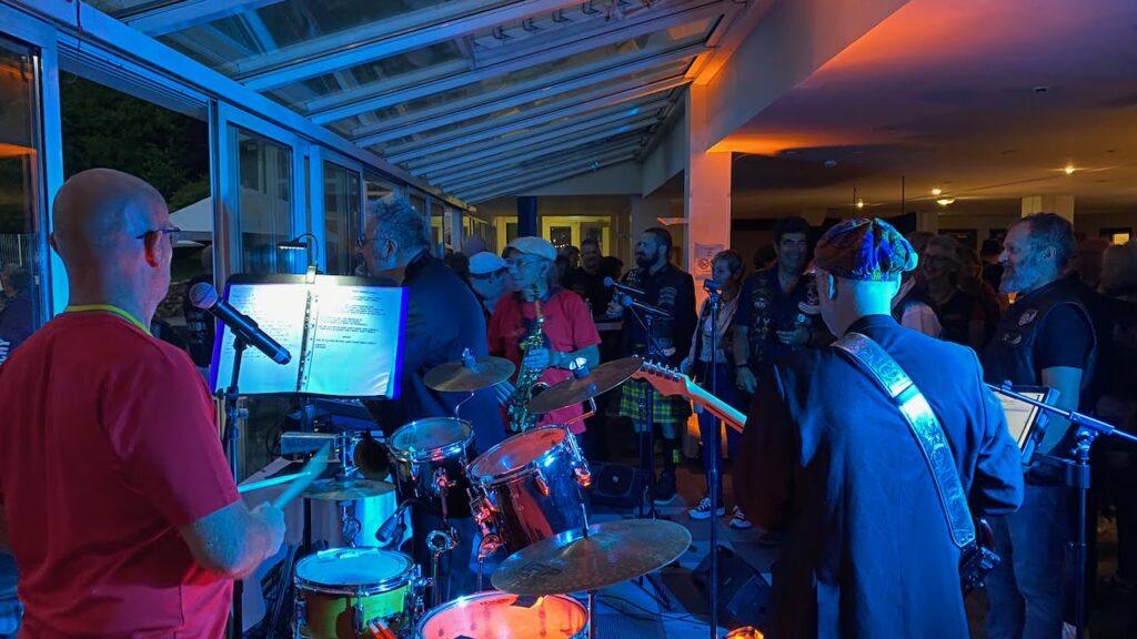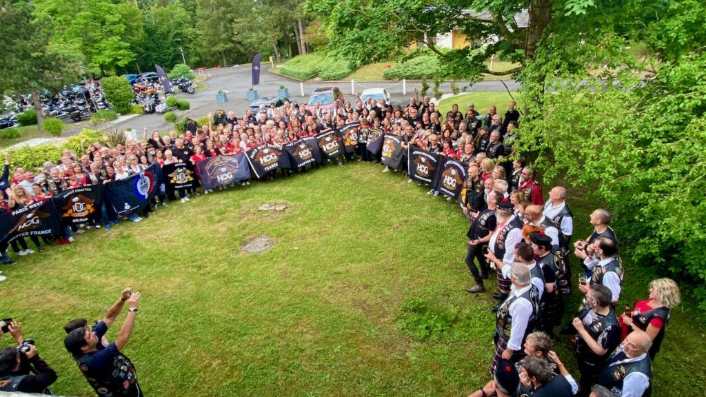 Ces musiciens ont déployé tout leur talent dès la traditionnelle remise des prix avant diner jusqu’à tard dans la nuit, voire tôt au petit jour quand les accros de la piste en demande encore avec le passage en revue des tubes des décennies 60 à 90 ! Cette dernière soirée est aussi l’occasion d’une dernière séance de shooting photo des groupes autour des drapeaux, un beau moment d’unité autour de nos couleurs et de la passion pour la Marque de la Motor Company de Milwaukee.