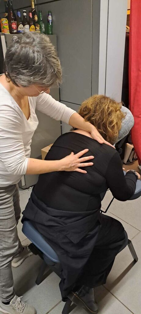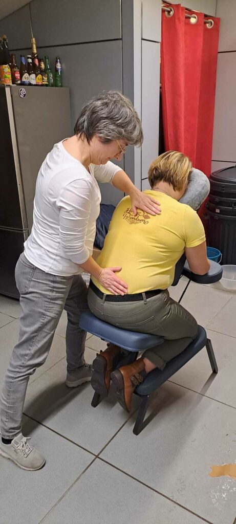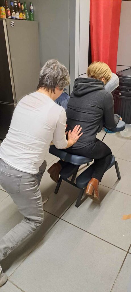 Après ces exercices qui nous auront aussi bien fait rire, démarre les massages individuels assis.
