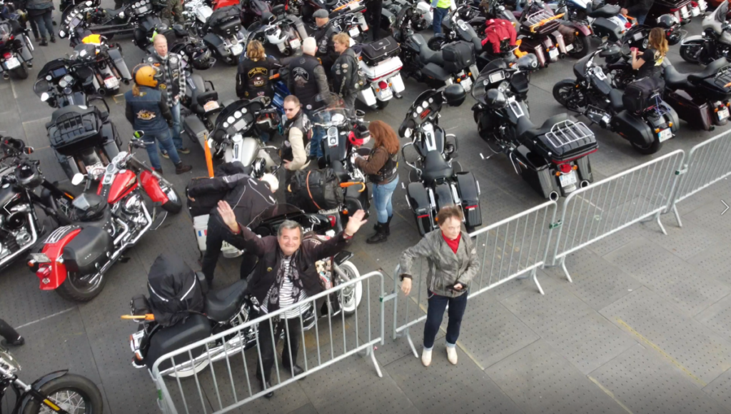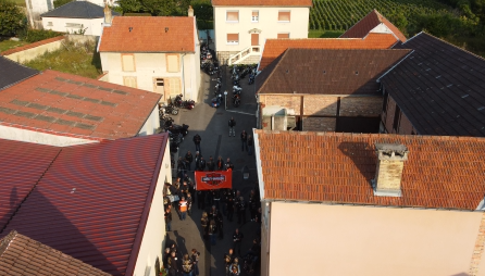 Après ce repas gargantuesque retour aux bécanes direction St Quentin où nous rejoindrons notre nouveau lieu de villégiature. Nos amis de St Quentin avait vu les choses en grand et cela m’a personnellement mis presque la larme à l’œil. Les officiels de la ville avaient tout fait pour bien nous accueillir et nous permettre de conduire notre parade en toute sécurité jusqu’au centre de la ville sur sa place principale où le son des cloches résonnait au rythme des moteurs. Un moment mémorable ! Allez hop encore une occasion pour moi de sortir mon drone mais je me suis dit plutôt de bon matin pour être en toute sécurité vis-à-vis du public.