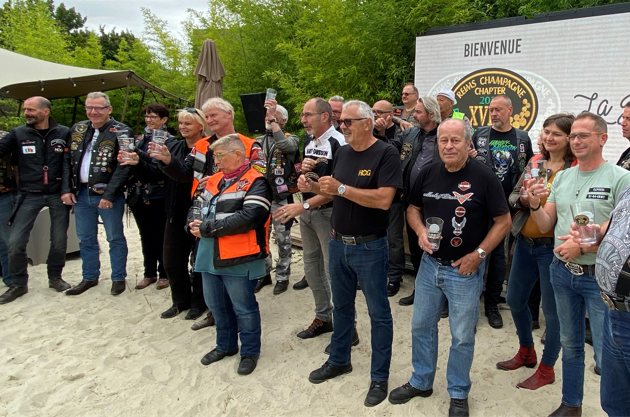 Deux heures plus tard et après notre séduisant chemin des écoliers nous voilà arrivés à la concession Harley-Davidson de Reims. Les derniers préparatifs pour recevoir les nombreux participants sont en cours et rapidement nous effectuons notre enregistrement, récupérons la plaque d’identification moto et hop en route pour un premier resto sympa avant de retourner en concession pour le démarrage officiel avec le reste des participants.