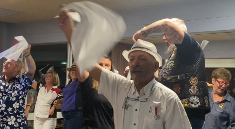 On ne tarde pas à repartir pour profiter des belles routes et rejoindre le lieu où nous logerons et où se tiennent les festivités : accueil des chapters, piscine, apéro, dîner dansant et sans oublier de dormir 😊. Un check-in bien assuré par l’hôtel (pas simple 160 personnes !), un rafraichissement piscine pour les quelques courageux (j’en étais…) ou drink pour les assoiffés et puis Patrick (directeur du chapter organisateur) toujours toisé de merveilleux chapeaux, accompagné de Jean-Pierre, son fidèle assistant, fera l’accueil de chaque chapter pour les remercier de leur présence et bien sûr participer au traditionnel échange de cadeaux.
