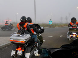 Rendez-vous 7h30 à Chambourcy : tous à l’heure, bravo… on prend 3 motos au passage à Vernon nous sommes au complet 24 motos, 2 trikes, 3 ladies et au total 40 bikers. Il fait très très froid.