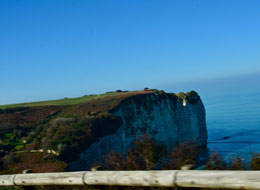 Gentleman Bidou a pensé à nous faire passer par la mer pour arriver à Etretat, le brouillard est dissipé : vue superbe. Nous arrivons un peu en retard (oups presqu’une 1 heure) on nous a cambriolé notre heure ? Bravo tables en terrasse, au soleil, vue directe sur la mer. Que du bonheur…