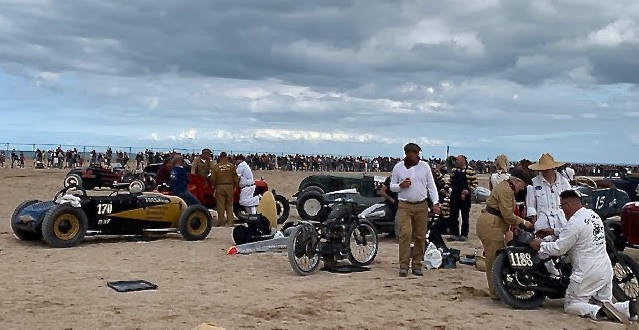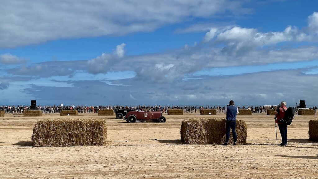 Depuis deux ans, The Normandy Beach Race nous propose de découvrir ces courses en ligne opposant deux bolides ; ici la vitesse n’est pas toujours reine mais il faut quand même arriver le premier avec pour seul gain le sourire et la bonne humeur des spectateurs et des nombreux concurrents venus de toute l’Europe. Les motos ne pouvant dater d’après 1950.
