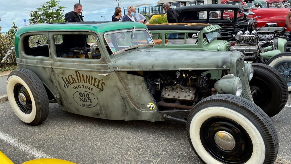 C’est donc vers cette sortie ludique que nous nous sommes élancés. Beau temps et autoroute dégagée nous voilà donc arrivés en Normandie. Pass sanitaire en règle et nous entrons dans l’arène pour découvrir une super ambiance avec des bolides d’un autre temps mais tellement attachants. L’organisation est un peu dépassée par l’ampleur de l’évènement et les deux food trucks et cinq boutiques sont vite saturés. Qu’importe on s’adapte et toute l’équipe a trouvé de quoi se sustenter. L’après-midi se passe au gré des courses et d’une belle balade sur la corniche de Ouistreham où nous pouvons admirer des Hot Rods, de vieilles berlines US sans oublier les mythiques Corvette et autres Mustang. Les motos ne sont pas en reste.