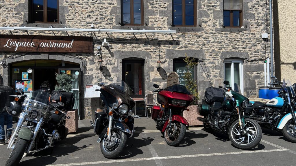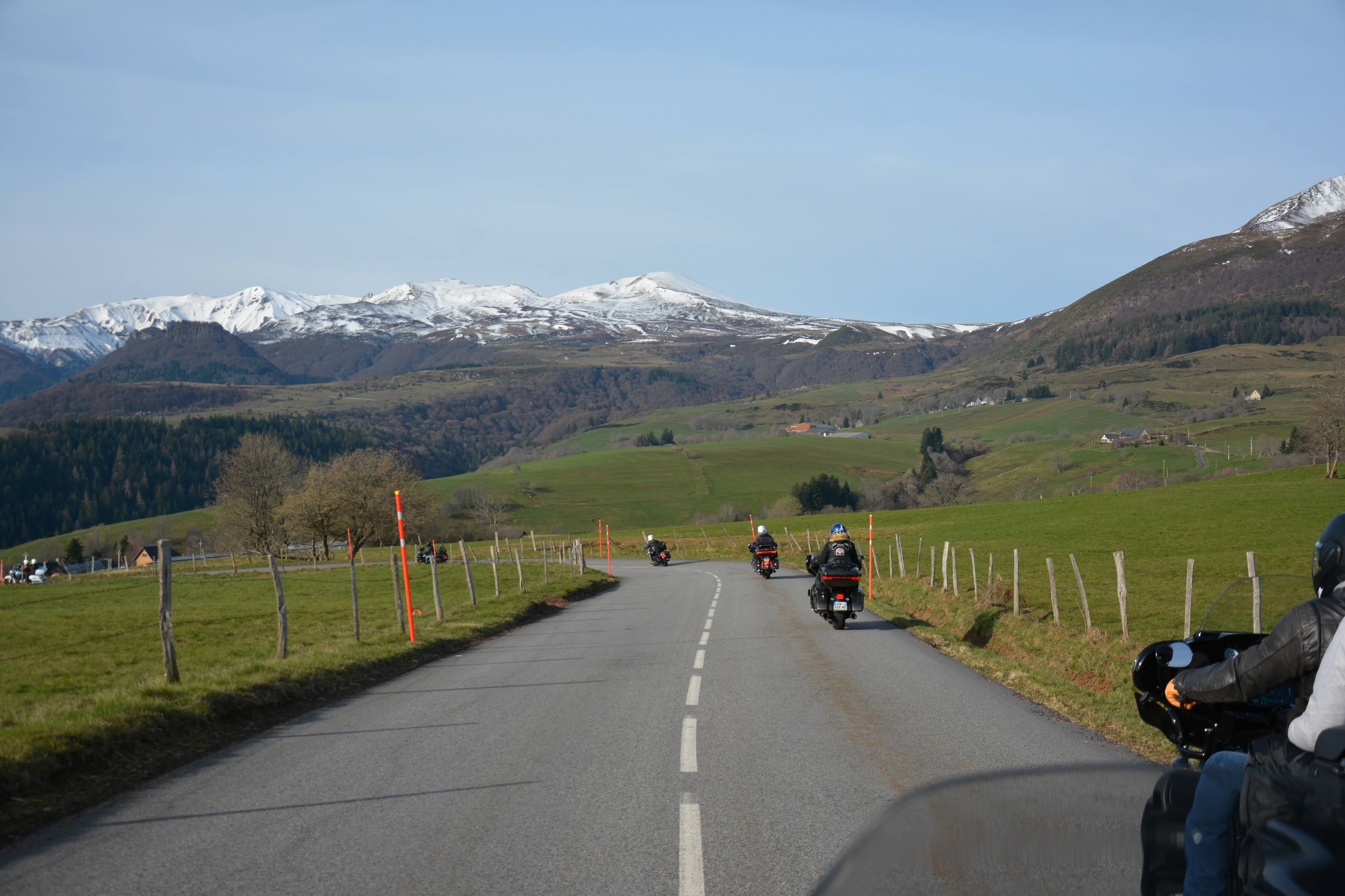 Passé Montluçon, les petites routes s’enchainent et les beaux paysages s’offrent à nous. Nous sommes maintenant au complet et c’est une belle guirlande de 29 motos et une voiture balais qui déferlent sur l’Auvergne. De petites en très petites routes nous arrivons à notre hôtel douillet et confortable pour passer une bonne soirée et nous en profitons pour souhaiter un bon anniversaire à Muriel. Les anecdotes fusent, et toute l’équipe a plaisir à se retrouver. En plus le PSG gagne son match !!!! (Nous avons loupé le Volcanic Chapter France Clermont-Ferrand mais nous leur ferons parvenir notre fanion afin de marquer notre amitié).