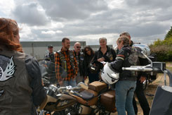 Rendez-vous très matinal fût donné en ce samedi 25 Août pour le départ vers l’Anjou. 16 motos, 25 personnes, Thierry S. en road captain, Stéphane M. en serre-file, les safeties Patrick P, Eric M, Didier B et Hervé D. (qui faisait là son 2ème essai en safety), et moi-même la Gentille Organisatrice et Marshale pour cette sortie. La météo nous a annoncé un temps plutôt clément, allez hop c’est parti ! (Bon, il s’est avéré que nous avons pris une bonne drachée vers Chartres ! Merci Météo France) !